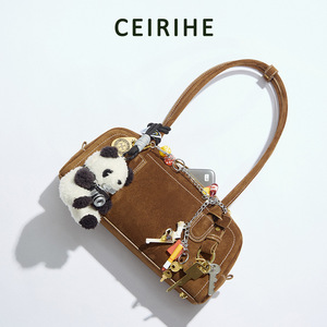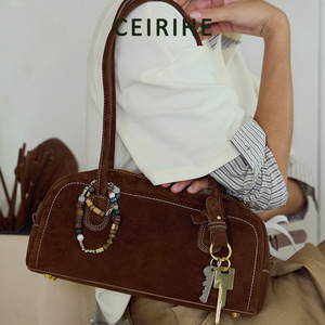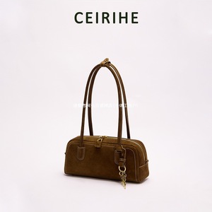 手提单肩CE春季腋下包2025HE新款长形韩系IRI通勤波士顿包女绒面