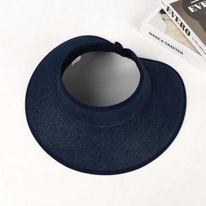 女性の日よけ帽子の広いつばの草はポニーテールを巻きます。