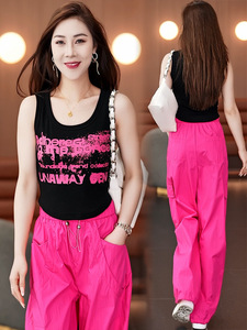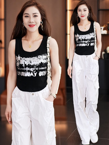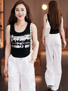 女性のためのファッションスーツ 2025 夏の新しいスタイルのスリムで年齢を減らすキャミソールトップワイドレッグパンツ 2 点セット