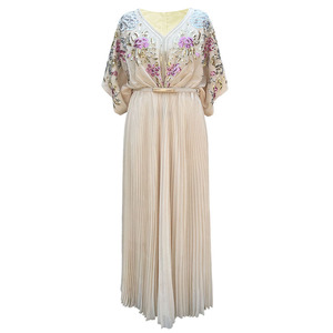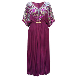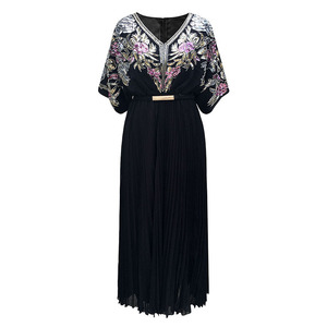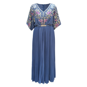 中东女雪纺百褶连衣裙 迪拜刺绣长袍abaya穆斯林长裙跨境外贸批发
