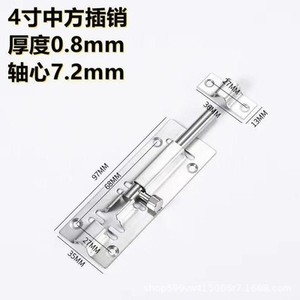 不锈钢中方插销门窗加厚实芯明装门栓防盗门木门锁房门方插销锁扣
