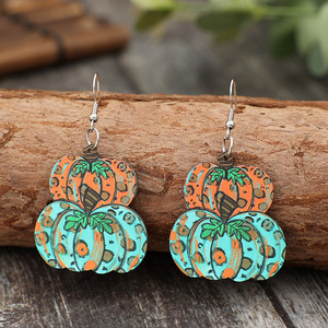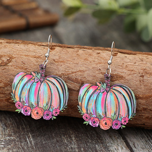 新しいクロスボーダー感謝祭秋の収穫水玉チェック柄カボチャの花のペンダントイヤリング