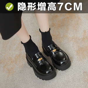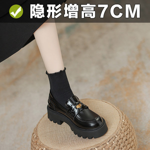 本革 7CM インナー高さゴールドコインローファー レディース つや消し厚底スリッポン ラウンドトゥ シングルシューズ 片足ソフトスモールレザーシューズ