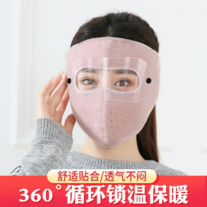 冬暖かいマスク、サイクリング電動フルフェイス耳保護、防寒防風二重層ポーラーフリースゴーグルマスク
