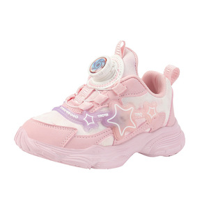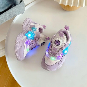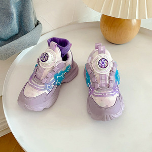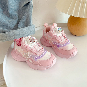 库洛米女童纽扣女孩运动鞋旋转纽扣公主儿童防水新款亮灯老爹