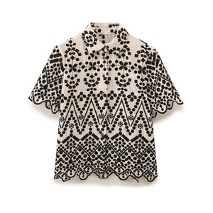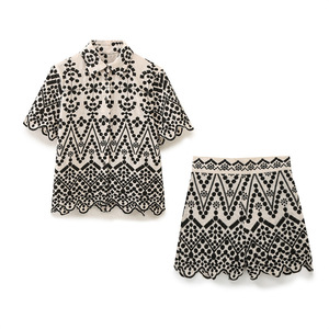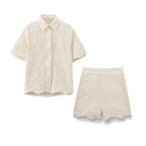 外国貿易リスト! 春夏新型欧米風女性ファッションカジュアル百合半袖刺繍シャツパンツ2731088