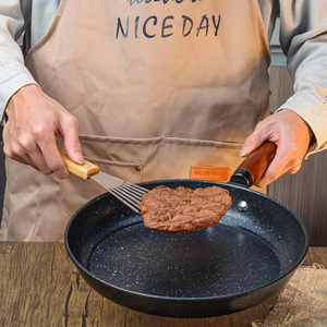 ステンレスの鍋のシャベルの多機能の木の柄の料理のシャベルのステーキの手は餅のシャベルをつかんで高温に耐えます。