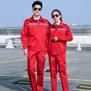 春と秋の耐摩耗性反射ストリップ作業服、労働保護服、衛生服、工場作業場の男性と女性の刺繍とプリントの長袖作業服