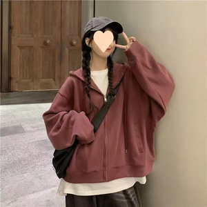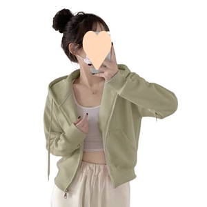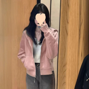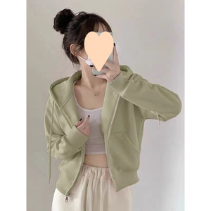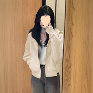 アメリカンレトロな小柄なショートフード付きスウェットシャツ薄手のコート女性の春と秋の新しいルーズカジュアルカーディガントップトレンディ