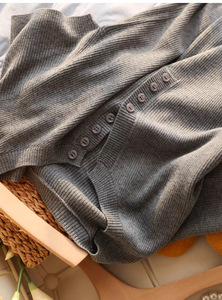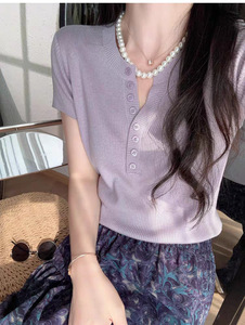 フレンチミルク黄色半ボタンvネック半袖tシャツ女性2025春夏修身洋気百合坑条ニット上着