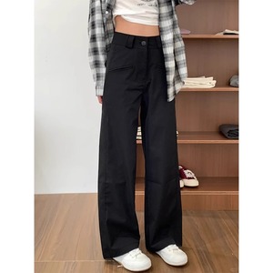 大きいサイズの太ったmmの黒色のまっすぐな筒の広い足のズボンの女性の夏の新型の高い腰はやせていてゆったりしている感じがします。