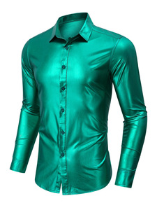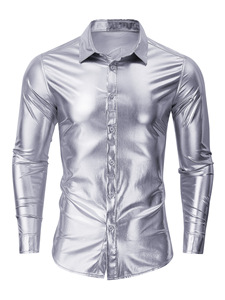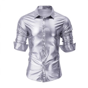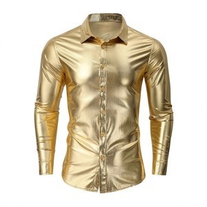 ヨーロッパとアメリカのクロスボーダーメンズ春と秋の長袖シャツメタリック光沢のある弾性ナイトクラブパーティーブロンズシャツ卸売