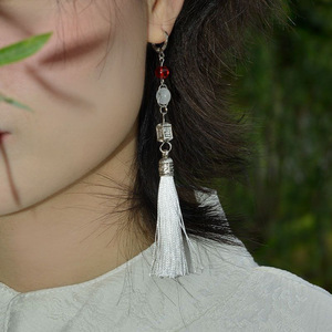 新しい中国風のタッセルペンダントイヤークリップ、ピアスなし、女性のニッチデザイン、ハイエンドイヤリング、アンティークスタイルイヤリング、チャイナドレスイヤリング