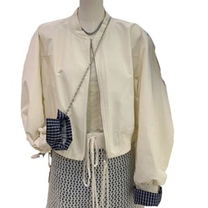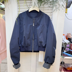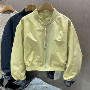 上衣小个子2025女外套立领春季夹克宽松拼接挽袖格子韩版短款新款