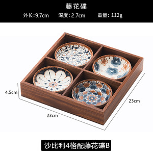 竹材9マス+手描き味皿9枚【オール無垢材】