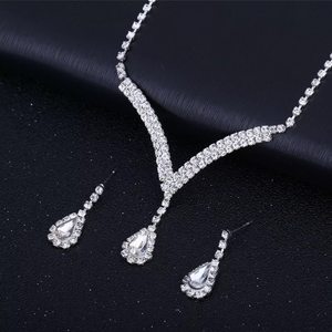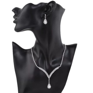 花嫁アクセサリー欧米ファッション満ドリルvネック水滴ペンダントネックレスピアスセットドリルイヤリングクロスボーダー女