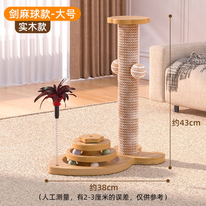 サイザル麻猫スクラッチポール、耐摩耗性、欠けにくい、無垢材猫クライミングフレーム、猫のおもちゃ、自己楽しみと退屈解消、垂直サイザル麻猫爪ボード