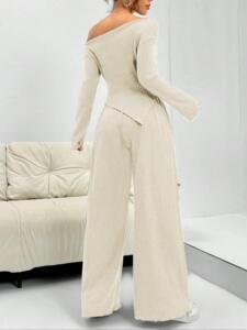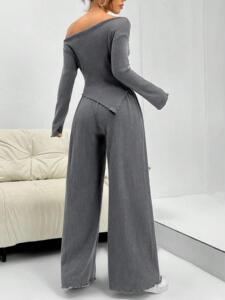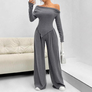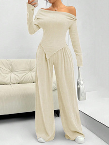 ヨーロッパとアメリカの国境を越えた新しいミニマリストスタイルの長袖ファッショナブルな不規則なトップス女性用伸縮性カジュアルパンツ2点セット