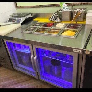 業務用溝付きサラダテーブル、フルーツ漬け冷蔵作業台、鮮度保持ショーケース、冷凍庫、ピザ小物冷蔵庫、冷凍庫