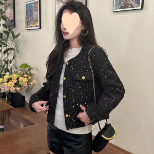 2025春秋人気の小香風ショートジャケット、ツイード素材、毛玉なし、色落ちなし、リッチガールスタイル
