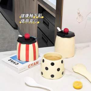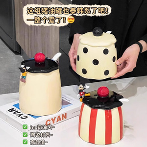 高颜値豚油タンク家庭用陶磁器耐高温生臭物油タンクスプーン付き食品級カプサイシン油専用タンク大容量
