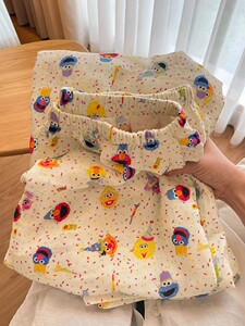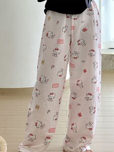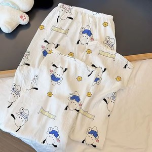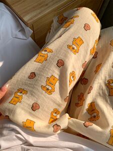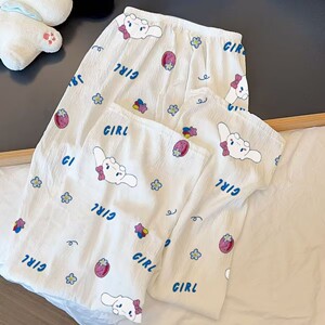 夏の韓国スタイルのクラウドコットンパジャマ女性のための薄い漫画草リスホームガールズパンツ春と秋は屋外で着用できます