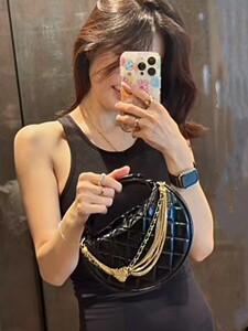 24S 夏秋新作 Xiaoxiangfeng オイルワックス牛革フラフープクラッチバッグスモールラウンドバッグチェーンバッグ 18