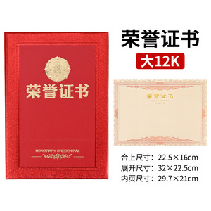 大12k荣誉证书 22x16cm