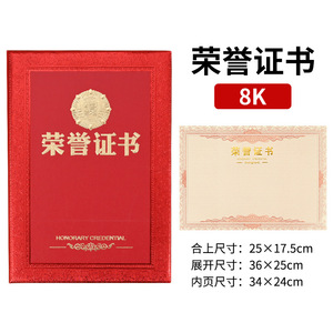 8k荣誉证书 25x18cm