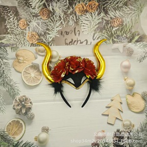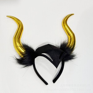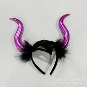 2025 新電気メッキプラスチック大きなホーンヘッドバンドハロウィン子供ドレスアップ頭飾りホリデー悪魔ヘッドバンド