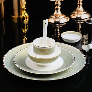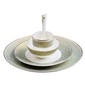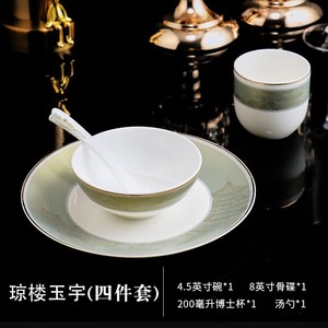 スターホテルテーブル食器セットクラブボーンチャイナボウルとプレート蝶骨プレート箸ホルダー丼スプーン8点セット卸売