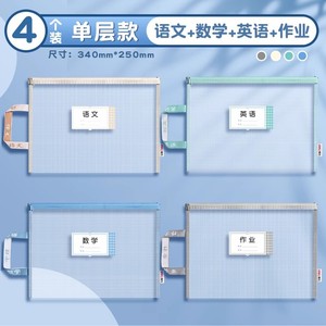デリ科目科目分類ファイルバッグ小学生ジッパー試験紙二層収納袋透明メッシュバッグ