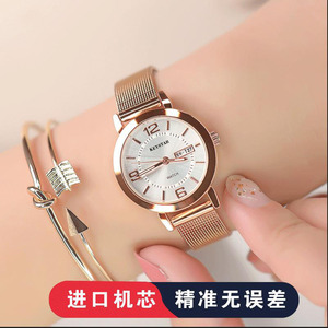 新しいスイスの有名ブランド自動巻き腕時計女性用防水ダブルカレンダー夜光時計韓国版学生腕時計女性用