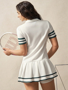 ヨーロッパとアメリカのファッションスポーツスタイルのシンプルなデザイン半袖テニススポーツショートジャンプスーツプリーツスカート