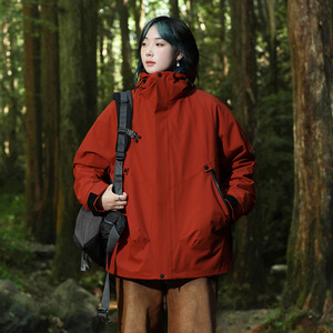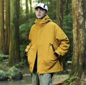 新しいスタイルのジャケット、男女兼用、アウトドア、秋冬、取り外し可能な帽子付き、防風防水、3-in-1登山服