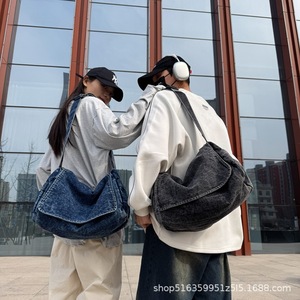 新しいスタイルの旅行用レトロ無地デイリーバッグ、大容量デニムショルダーバッグ、カジュアルクロスボディバッグ