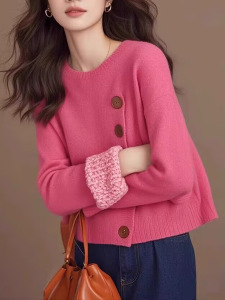 重工デザイン感薯粉色ボタンプルオーバーニットセーター女性2025新型怠惰高級感