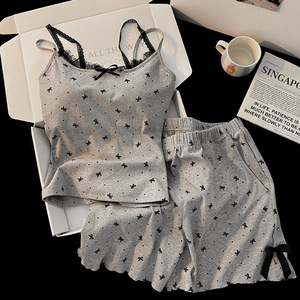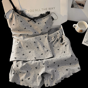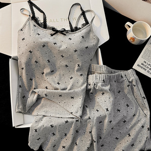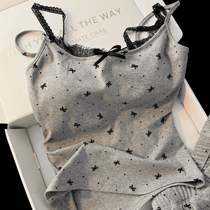 胸パッド付きのパジャマ女性2025新作夏の純欲風モーデール蝶結びレースルームウェア