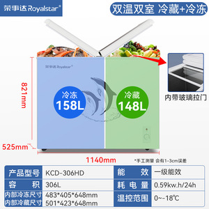 Royalstar 158 デュアル温度冷凍庫家庭用冷蔵および冷凍両用冷凍庫鮮度保持冷蔵庫商業小型水平