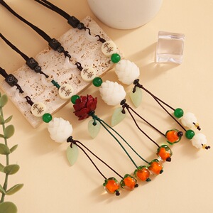 新品柿柿如意自動車ストラップ瑠璃民族風編みバックミラーストラップ車載装飾ストラップ文芸
