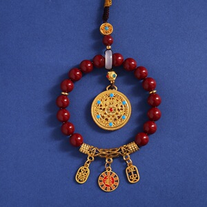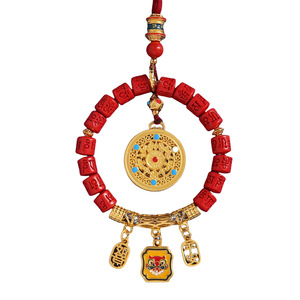 朱砂国风饰品沙金挂件民族风挂件合金罗盘配件流苏吊坠批发平安