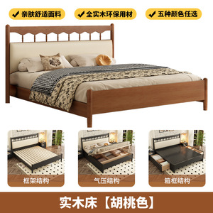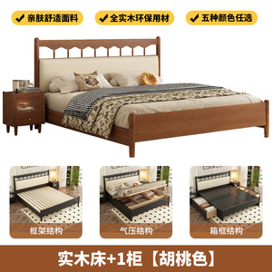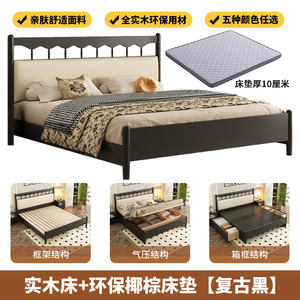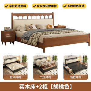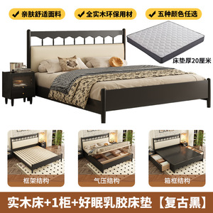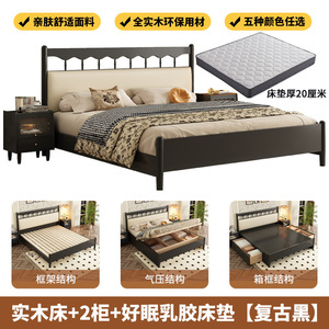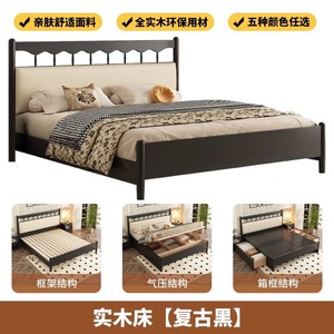 フレンチレトロ無垢材ベッドアメリカンダブルベッドマスターベッドルームシンプルモダン中世スタイルブラックウィンザーベッドサイドソフトバッグ
