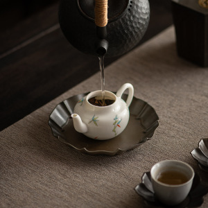 古代の錫壺、高級茶受け、茶マット、日本茶道、カンフー茶アクセサリー、古い錫製金属壺受け、乾燥泡立て台