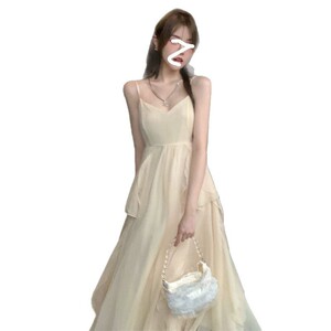 夏休みサスペンダーフリルドレス痩身雲南旅行森妖精ドレス三亜海辺ビーチドレス