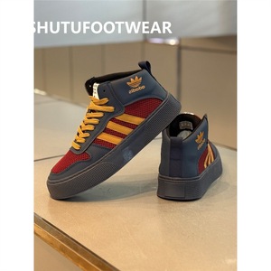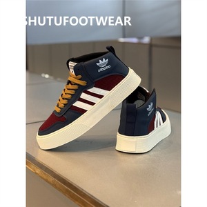 高帮板鞋男2025年夏季新款三道杠网面透气男鞋拼色时尚百搭休闲鞋