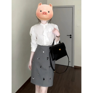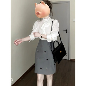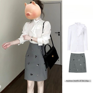お姉さんの気質の女神の范軽豪華な高級感の女性の味の上着の半身のスカートの2つのセットを着ます。