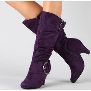 外国貿易供給つや消しベルベット春と秋の女性のブーツベルトバックルハイチューブナイトブーツ厚いヒールの靴ウィッシュアマゾン速達