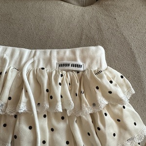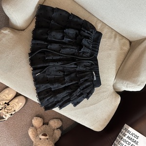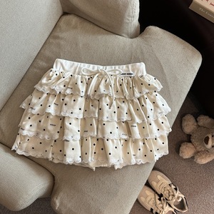 2025年夏の新作のリアルショット、フリルレイヤードケーキ水玉スカート、巾着レースアップ、女性用スイートショートスカート