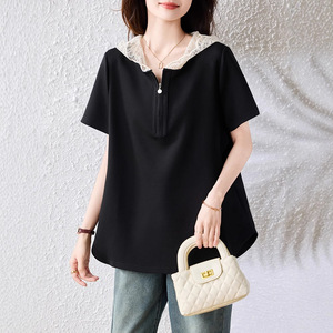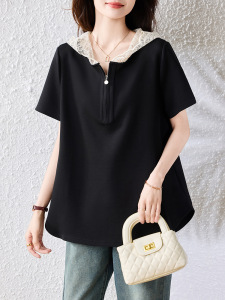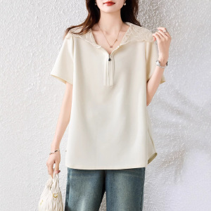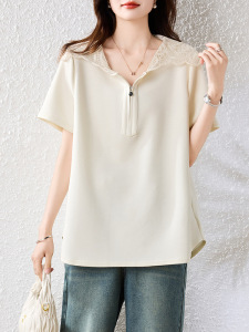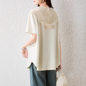 実写スポット純色半袖tシャツ2025夏の新型ファッション減齢がゆるいレースフード上着
