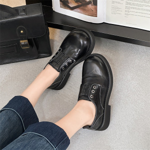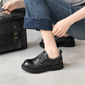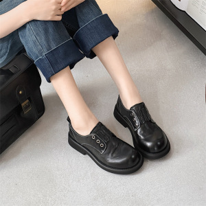 蝶マカオ2025の新型の小衆楽福靴の女性の黒色の本革の厚い底の太い靴と単靴の百合英倫の小さい靴の女性